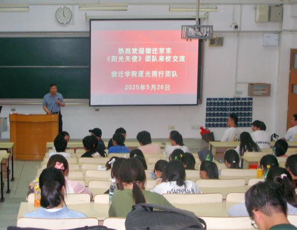 5月26日,宿迁学院《逐光而行》邀请宿迁京东客服“阳光天使”团队走进宿迁学院,参观、交流,开展联建活动;为莘莘学子分享了一段段充满温暖与力量的励志故事。宿迁学院《逐光而行》团队15名核心成员,在校企合作部主任、指导老师周明栋协调下,组织了本次活动。经济管理学院党委副书记沈姣、分团委书记余佳,以及近180名同学参加本次活动。